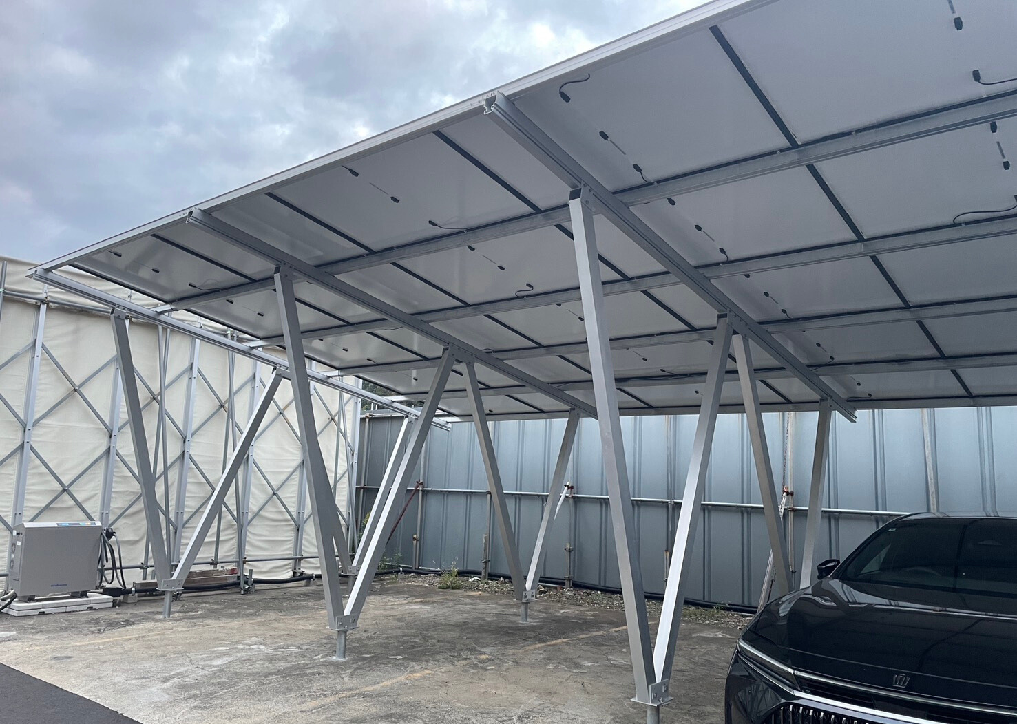 弊社では、一般的な屋根への設置ではなく、車の日よけかつ場所・EVの有効活用を兼ねたソーラーカーポート型及びV2Hを採用しました。導入のきっかけは、私自身が展示会によく足を運ぶ中で、EVやエネルギー関連の新しい技術に触れ、興味を持ったことでした。また、電気代の上昇もあり、このままでは経費がかさむと感じたことが背景にあります。もともと電気自動車には関心がありましたが、当時は選択肢が一社ほどしかなく、見送っていました。現在は弊社の社用車はEVを使用しており、購入の際にV2Hとソーラーカーポートの検討を行いました。こうした複数の要素が重なり、今回の導入に至りました。結果的にキャッシュアウトを抑え、経費削減にもつながっていると感じています。なので一番のキッカケとしてはEVへの興味が最初のきっかけとして大きかったと思います。